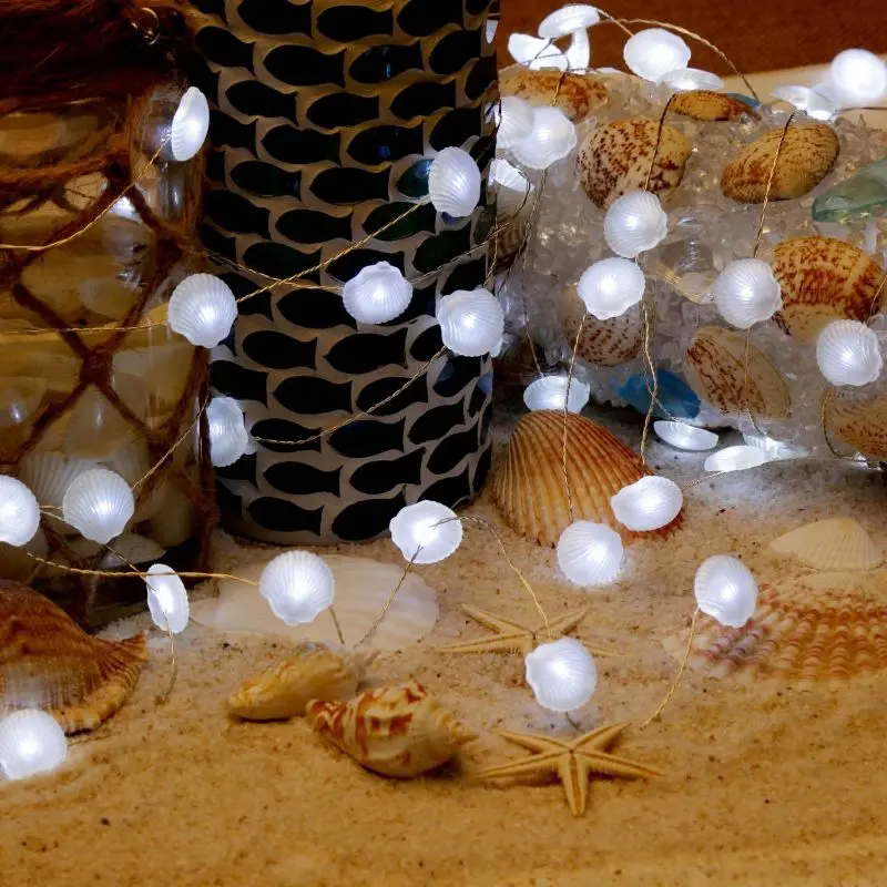 Descripción Tira de luz con mini ostras shell de 1 metro de largo.Funciona con 2 pilas AA. No incluye las pilas.
